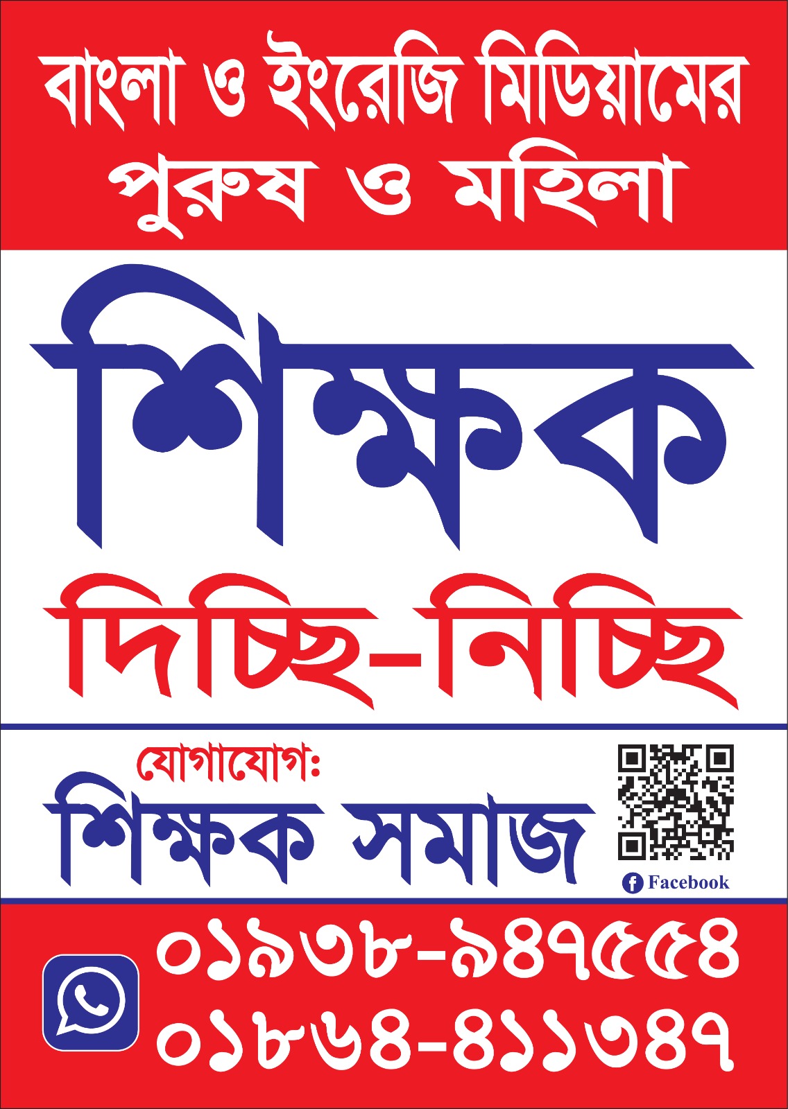 যেসব সম্মানিত অভিভাবক গৃহ শিক্ষক খুঁজছেন, তারা আজই আমাদের সাথে যোগাযোগ করুন: +8801938947554, 01864411347। শিক্ষক সমাজ (Teachers Society) – যেখানে শিক্ষা ও প্রতিশ্রুতি মিলিত হয়।